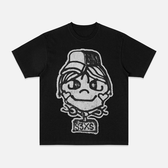Snapface Tee in black, crafted from premium Australian Cotton Breeze (235gsm) or Japan Cotton (200gsm) for superior durability and comfort. Features a semi-boxy fit that balances contemporary style with wearability. The design showcases striking silver glittered plastisol print or crisp white plastisol detailing with half-coverage application, creating visual depth and dimension. Built for everyday wear with quality construction that withstands regular washing and wear.